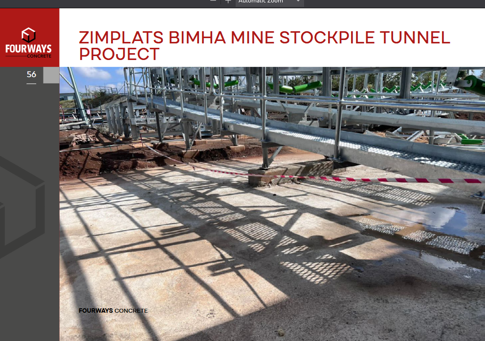 As part of the Bimha Mine’s major 3 Million Tonnes Per Annum (3MTPA) upgrade, Zimplats required a partner capable of delivering the foundational concrete works for critical surface infrastructure. The project’s complexity involved constructing robust foundations for the new stockpile, numerous conveyor belt bases, and the main office buildings, all of which had to be built to withstand heavy industrial use and integrate with existing operations.